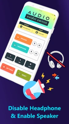 The Audio Output Switch app will assist you in enabling and switching your audio output to headphones, speakers, or other output devices. The other output device supports Cast, Bluetooth, and USB.