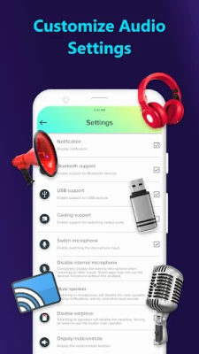 When the headphones are inserted or removed from the jack, the app will automatically detect them. When switching to the desired output, choose the microphones from the handset, USB, internal, and Bluetooth options to utilize.