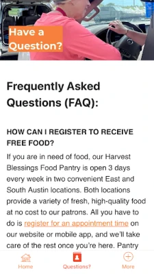 Do you need food, clothing, baby diapers, and more? Through the app, we make it easy to find what you need and register to receive services at convenient locations across our city, Austin, Texas.