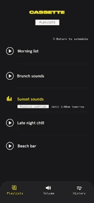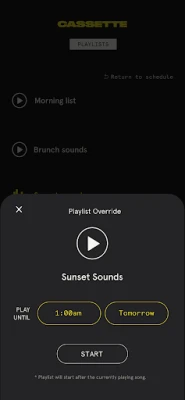 The Cassette remote application allows Cassette music for business customers who use the Cassette music system the ability to see what is currently playing at their location, the status of their devices, override the current playlist and up or downvote songs to provide feedback and influence the playlist.