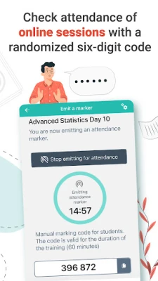 • Track In-Person and Online Classes: Use secure Bluetooth for on-campus tracking or a six-digit code for virtual classes.