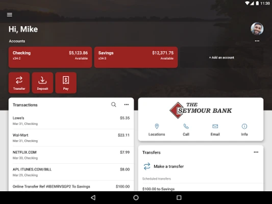 To use the The Seymour Bank app, you must be enrolled as a The Seymour Bank Internet Banking user. If you currently use our Internet Banking, simply download the app, launch it, and login with the same Internet Banking credentials.