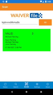 The WaiverScan app adds barcode scanning ability to the online waiver form workflow. Waivers signed using WaiverFile will provide customers with a QR code "ticket" to confirm their entry. Use the WaiverScan app to quickly confirm that each person has a signed waiver. The WaiverScan app from WaiverFile greatly increases the speed that you can check customers in, while ensuring that everyone has a completed waiver on file. This protects your business and makes the whole process easier for both your customers and your staff.
